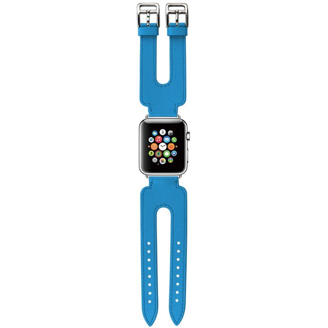 Stimmen Sie mit diesem schicken Echtleder Armband in Blau Ihre Apple Watch Series 1/2 jeden Tag auf das aktuelle Outfit ab.