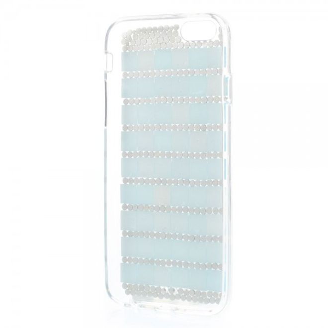 iPhone 6/6S Elastisches Plastik Case mit Quadraten und Glitzersteinen - blau