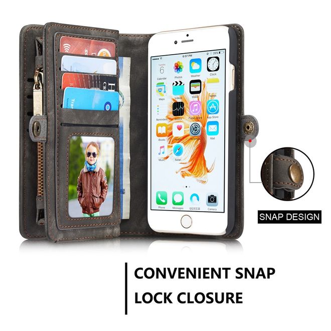Caseme - iPhone 6 Plus/6S Plus Hülle - Case aus Leder/Plastik - Retrostyle - abnehmbares Plastik Cover - grau