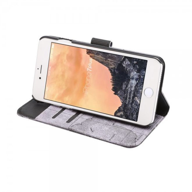 Case für iPhone 8 Plus / 7 Plus - Handyhülle aus Leder - mit Weltkartenausschnitt - grau