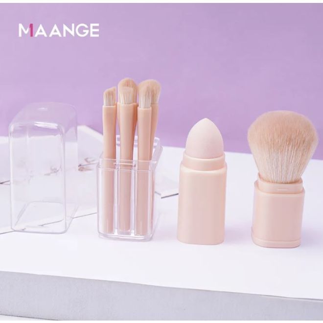 Maange - Schminkpinsel 8-teiliges Set - Mini Make-Up Reise Pinsel Set - inkl. Aufbewahrungsbox - rose beige