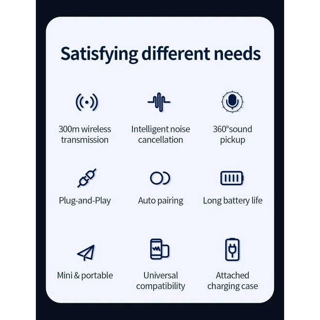 Im Ladecase kannst du das Mini Mikrofon nicht nur aufbewahren, sondern auch direkt laden, egal wo du gerade bist. Der 70mAh Akku des Mikrofons hält für bis zu 4.5 Stunden, respektive bis zu 22 Stunden, dank des Ladecases (450mAh). Mit der Ladebox lässt sich das Mikrofon bis zu 5 Mal aufladen. Ausserdem verfügt das Mikrofon über eine Schnellladefunktion, lade es für nur 5 Minuten auf und schon ist das Mikrofon für 1 volle Stunde einsatzbereit. Das Ladecase kann per USB Typ-C Kabel, welches im Lieferumfang enthalten ist, wieder aufgeladen werden. Zudem verfügt das Lavalier Mikrofon über einen Clip, womit du es z.B. an deinem Shirt befestigen kannst.
