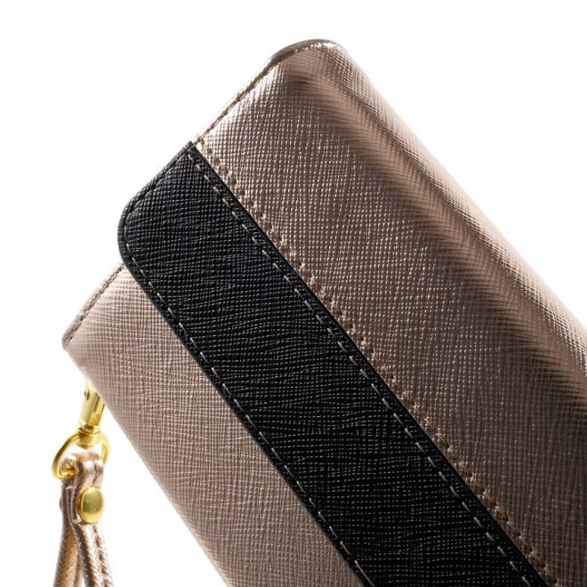 Universelles, zweifarbiges Leder Portemonnaie mit integrierter Smartphone Halterung bis 16,5x8cm - champagnerfarben