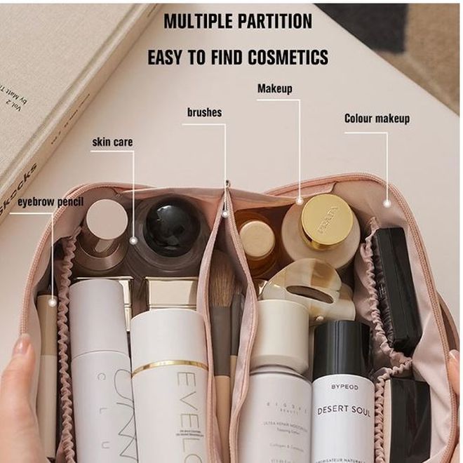 Das Necessaire verfügt über mehrere Fächer und ein doppellagiges Design. Das extra grosse Fassungsvermögen bietet genügend Platz für alle deine Beauty Artikeln. Der Make-up Organizer besteht aus strapazierfähigem, leichtem und wasserdichtem PU-Material (Kunstleder) und kann leicht von Hand gereinigt werden.