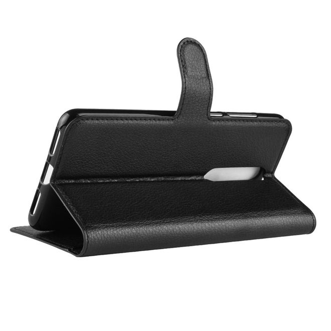 Nokia 3.1 Plus Handy Hülle - Litchi Leder Bookcover Series - schwarz