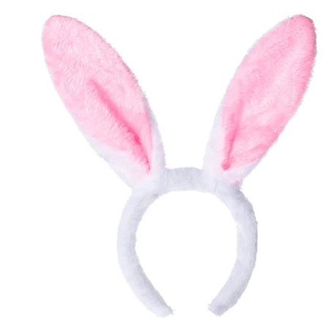 Plüsch Hasenohren Haarreif - Osterdeko - Party Verkleidung - weiss/rosa