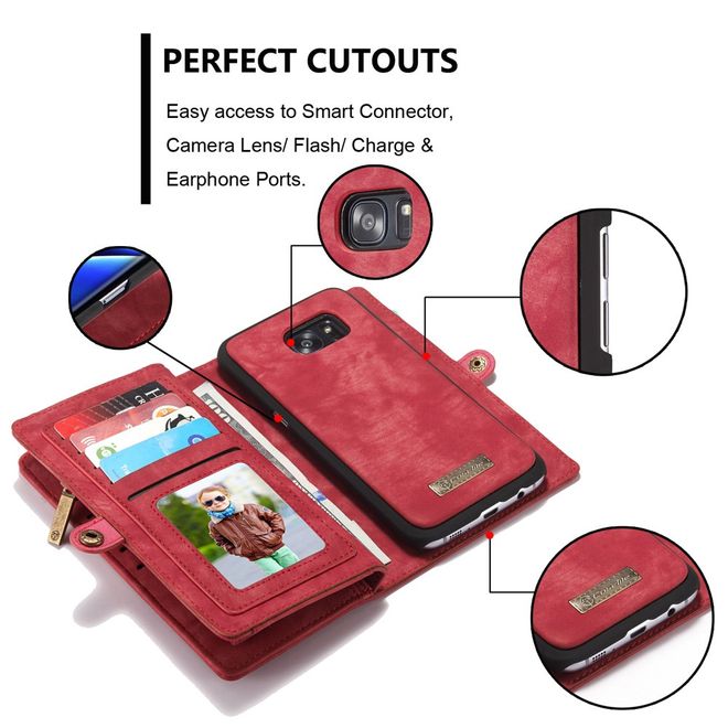 Caseme - Samsung Galaxy S7 Edge Hülle - Case aus Leder/Plastik - Retrostyle - abnehmbares Plastik Cover - rot