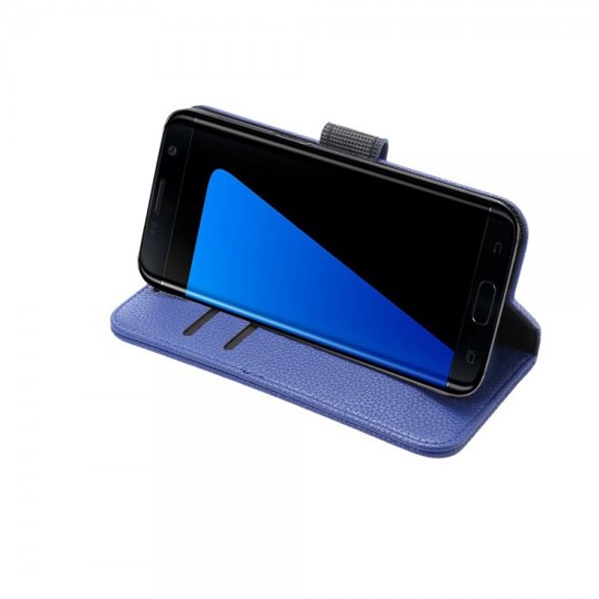 Samsung Galaxy S7 Edge Elegante Leder Case Hülle mit Litchitextur und Standfunktion - blau
