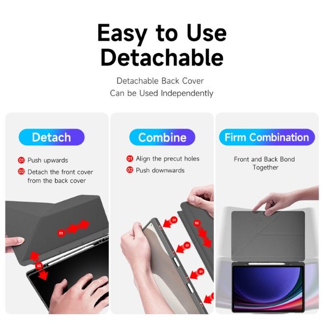 Das Samsung Galaxy Tab S10 FE+ Case hat aber noch viele weitere super Eigenschaften wie die Stifthalterung oder der magnetische Verschluss. Falls dich beim Gamen die Displayklappe stören sollte, kannst du diese ganz einfach im Handumdrehen entfernen.