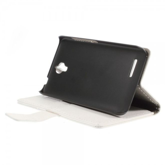 Alcatel One Touch Idol 2 Mini Klassisches Leder Case mit Litchitextur - weiss