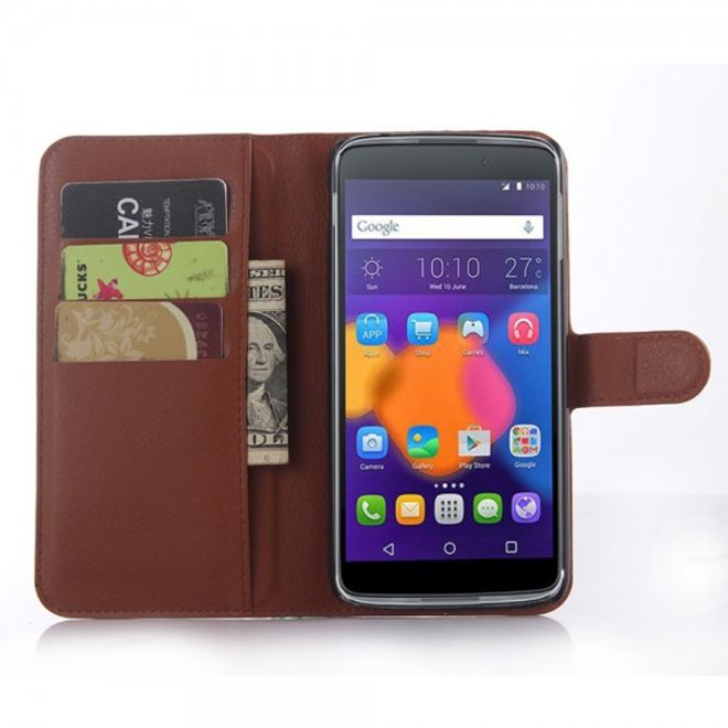 Alcatel One Touch Idol 3 5.5 Leder Case mit Litchitextur und Kreditkartenslots - braun