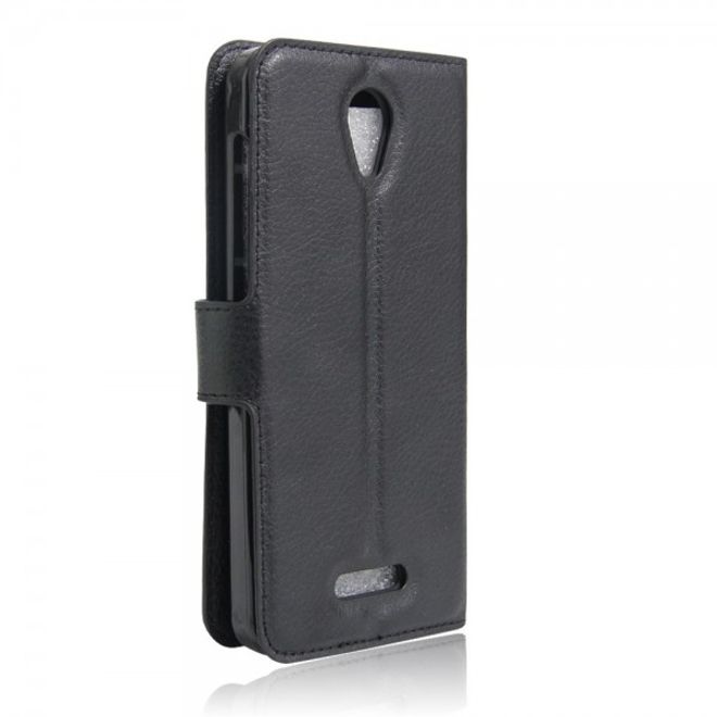Alcatel OneTouch Pop 4 Zeitlose Leder Case Hülle mit Litchitextur und Standfunktion - schwarz