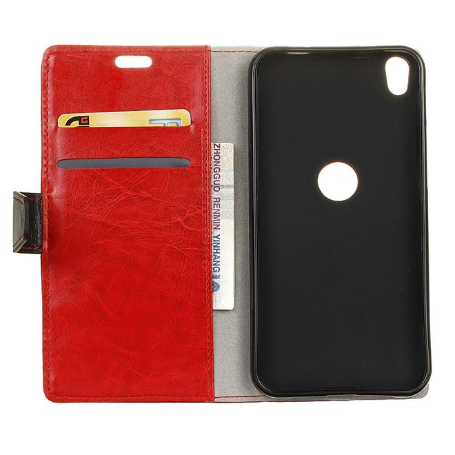 Alcatel Shine Lite Handyhülle - Case aus Leder - mit Kontrastfarben und Standfunktion - rot