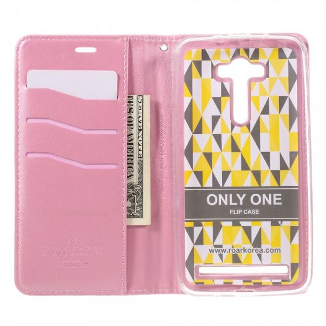 Roar Korea - Asus Zenfone 2 Laser 5.5 Case - Leder Flip Hülle - mit Standfunktion - pink