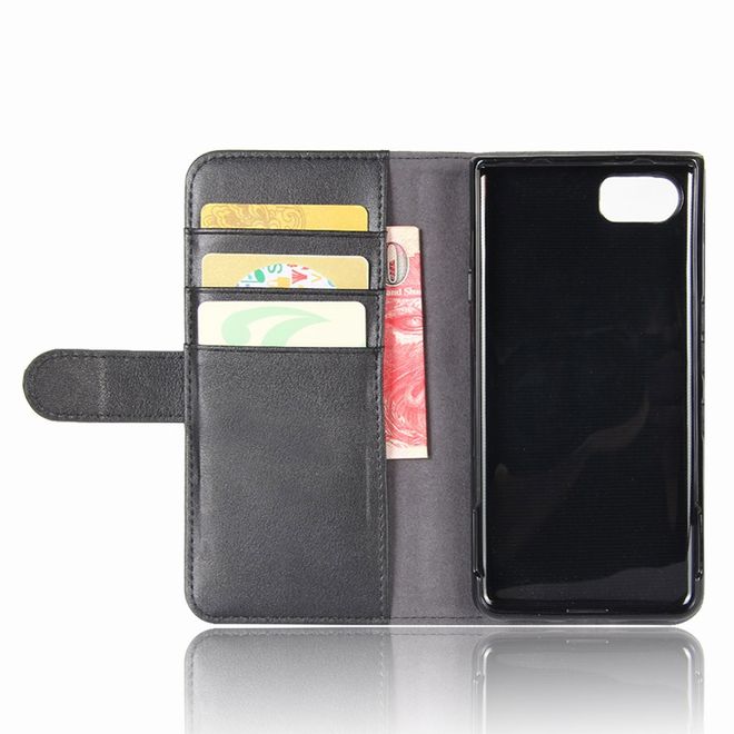 BlackBerry Keyone Handycase - Hülle aus echtem Spaltleder - mit Standfunktion - schwarz