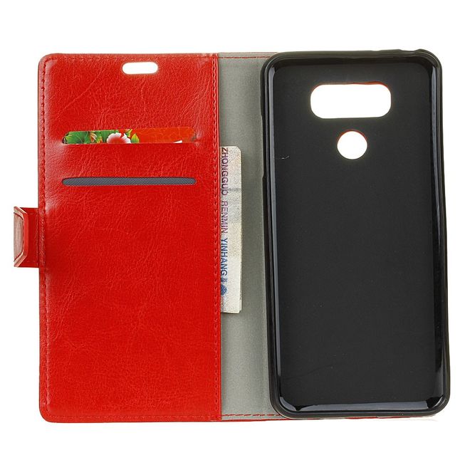 LG G6 Handyhülle - Crazy Horse Leder Case - mit Standfunktion - rot