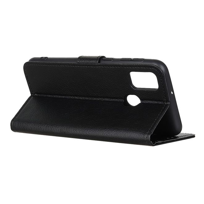 Oppo A53 (2020) Handy Hülle - Litchi Leder Bookcover Series - schwarz