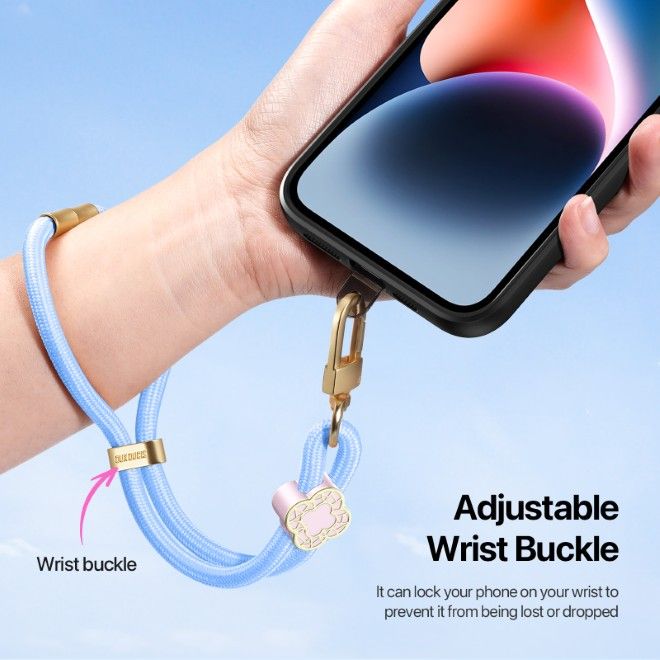 Das langlebige Seil hat einen Durchmesser von 6 mm und ist besonders strapazierfähig. So bleibt dein Smartphone zuverlässig an deinem Handgelenk und ist optimal vor Verlust oder Stürzen geschützt. Der Verschluss ist flexibel und lässt sich individuell an jedes Handgelenk anpassen.