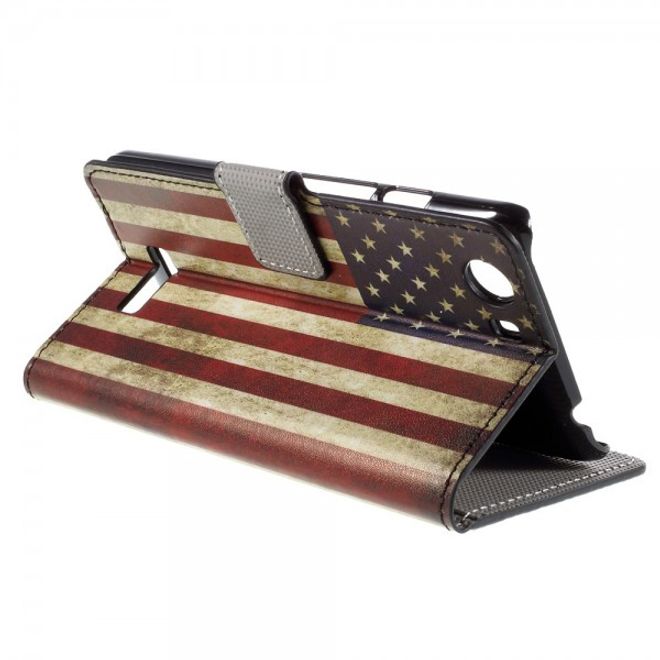 Wiko Bloom2 Leder Case Hülle mit USA Flagge retro-style