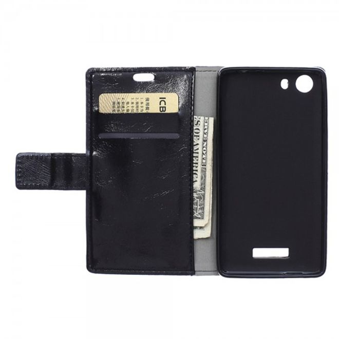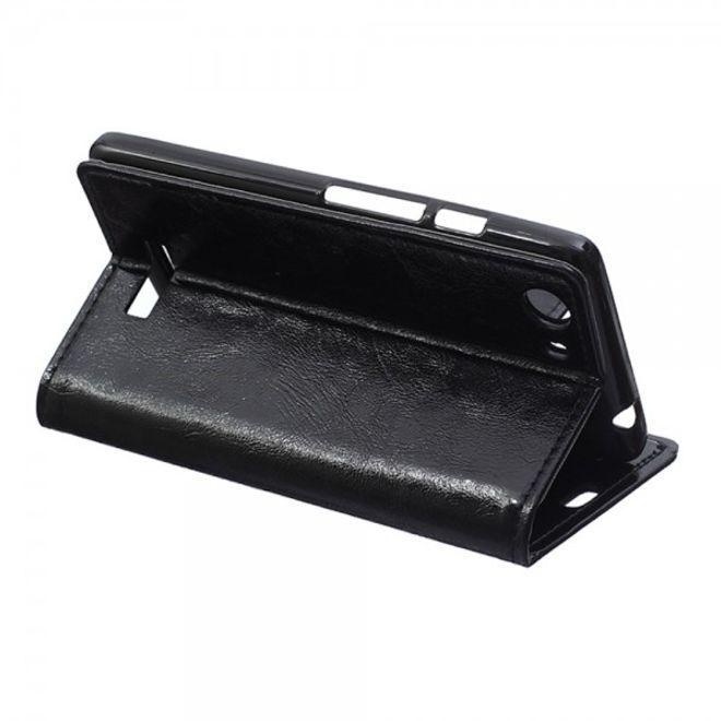 Wiko Bloom2 Schicke Crazy Horse Leder Case Hülle mit Standfunktion - schwarz