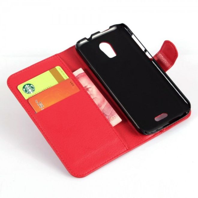 Wiko Darkmoon Schicke Leder Case Hülle mit Litchitextur - rot