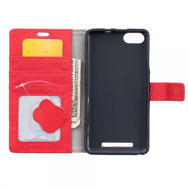 Wiko Lenny 3 Moderne Echtleder Flip Case Hülle - rot