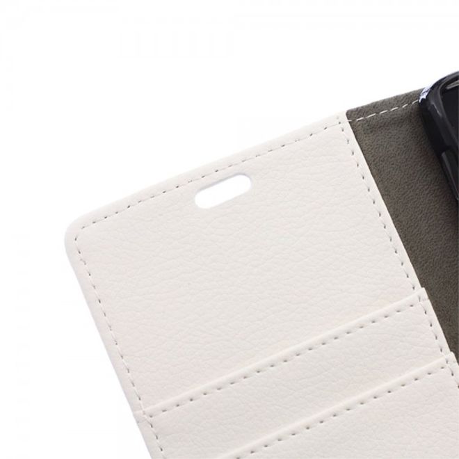 Wiko Selfy 4G Leder Cover Case mit Litchitextur und Kreditkartenslots - weiss