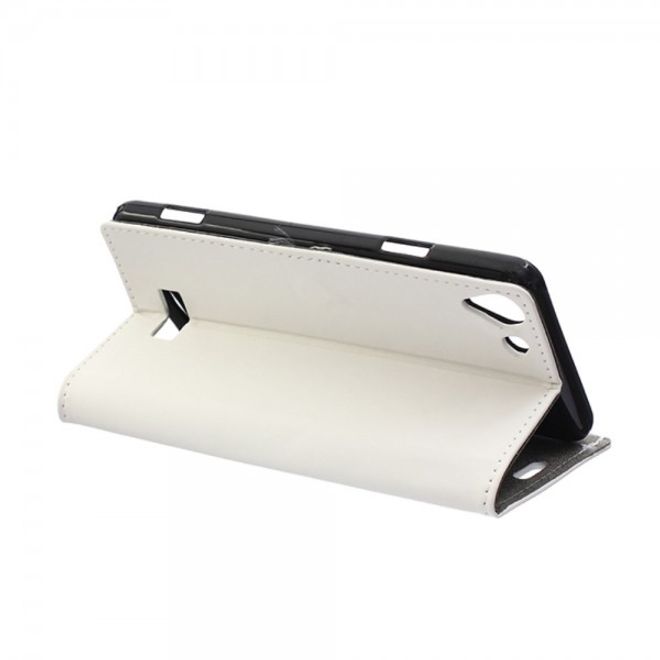 Wiko Selfy 4G Modische Leder Case Hülle mit Kreditkartenslots - weiss