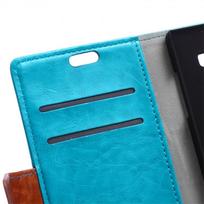 Wiko Selfy 4G Zweifarbige Crazy Horse Leder Case Hülle mit Standfunktion - blau