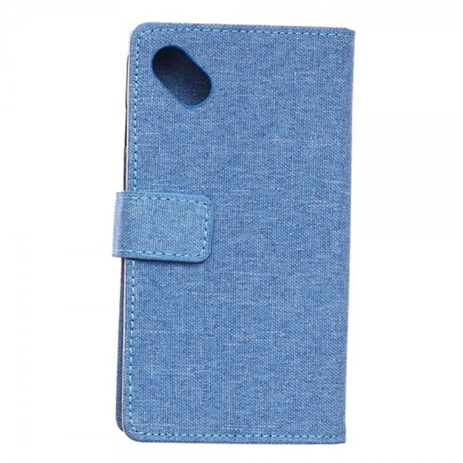 Wiko Sunset2 Leder Case Hülle mit stoffartiger Textur und Standfunktion - hellblau