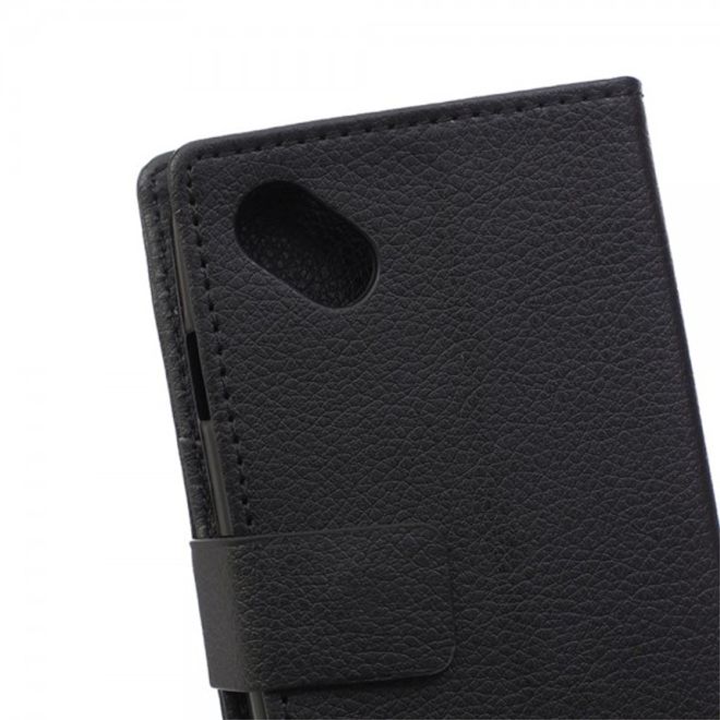 Wiko Sunset2 Leder Cover Case mit Litchitextur und Standfunktion - schwarz
