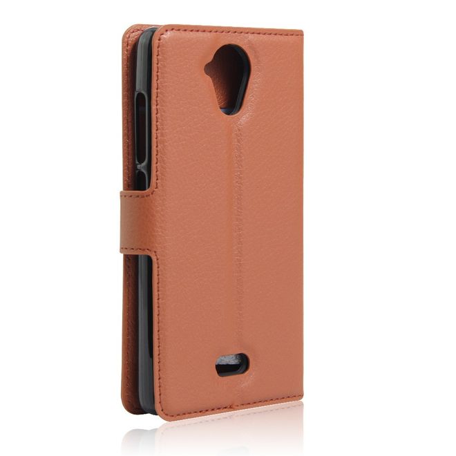 Wiko U Feel Lite Handyhülle - Leder Case - mit Litchitextur und Standfunktion - braun