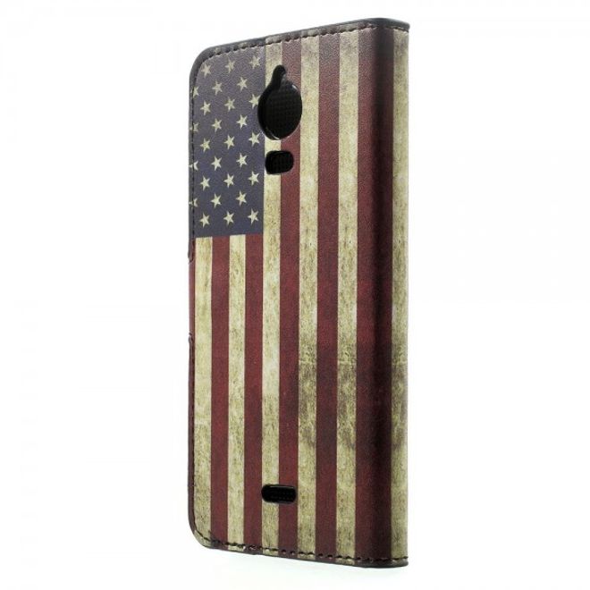 Wiko Wax Leder Case Hülle mit USA Flagge retro-style